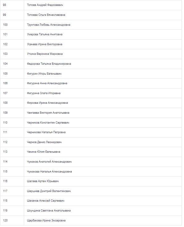 По состоянию на вечер 26 марта МЧС России обнародовало имена 120 погибших из 139 жертв теракта в Москве.