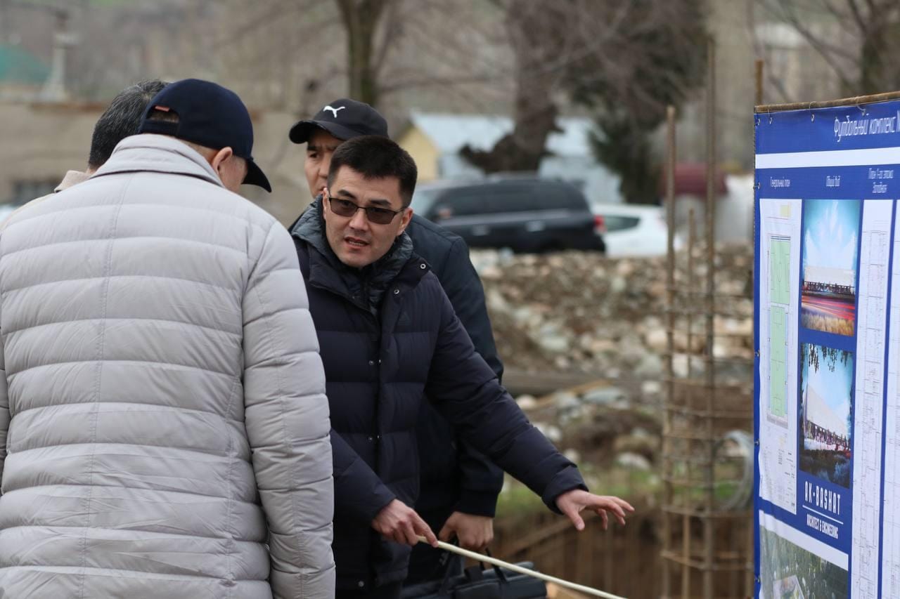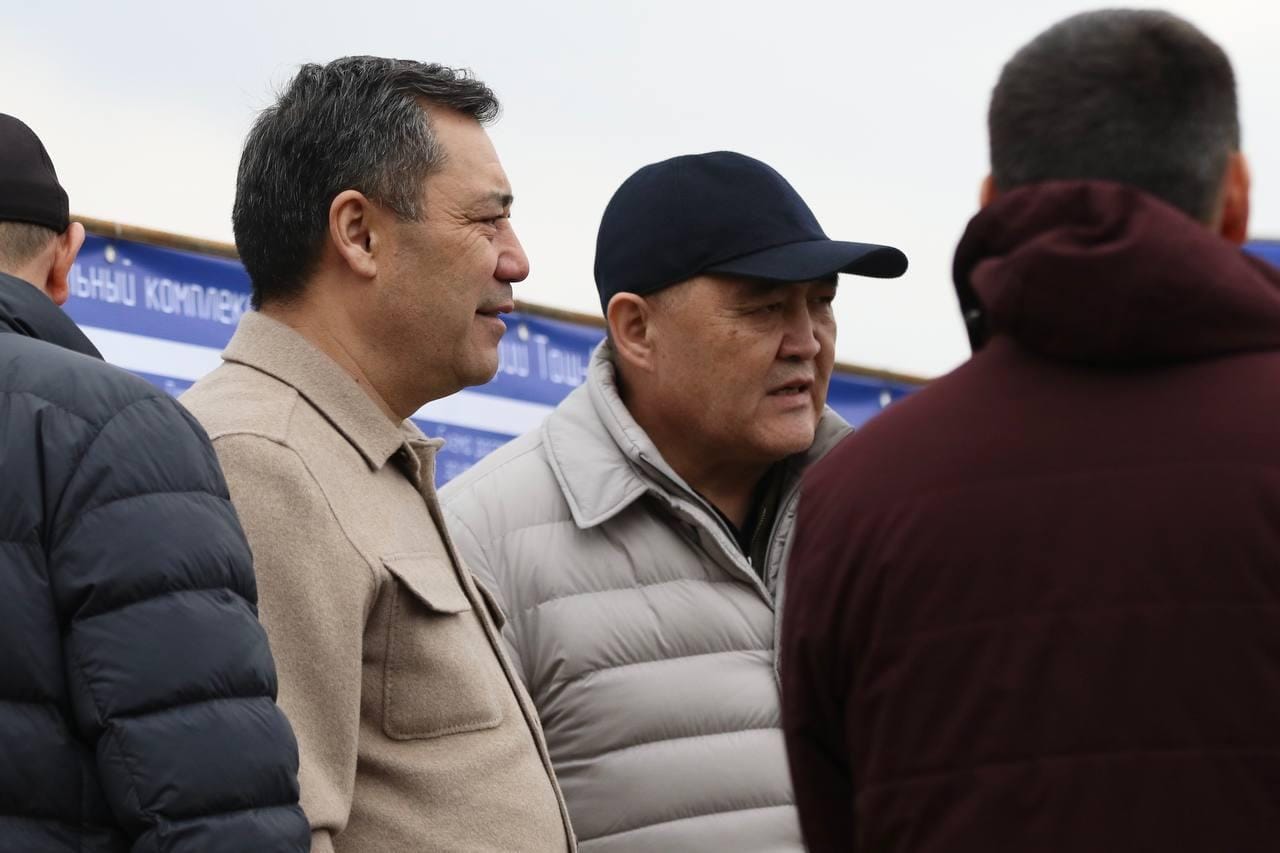 Президент КР Садыр Жапаров и глава Госкомитета нацбезопасности (ГКНБ) Камчыбек Ташиев, который также является президентом Кыргызского футбольного союза, 30 марта внепланово посетили место строительства футбольного комплекса в селе Беш-Кунгей.