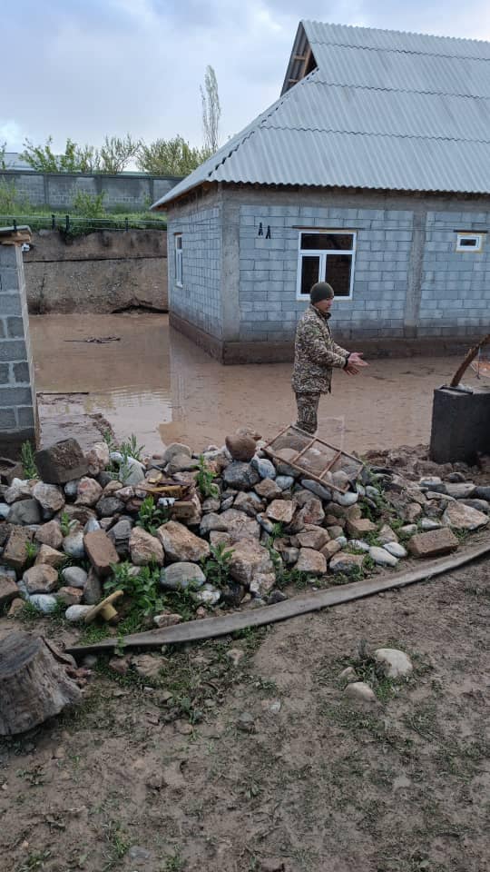 Как сообщается, вчера, 5 мая, около 18:30 из-за дождя произошло наводнение в районе Лейлекского района и города Сулюкта Баткенской области.
