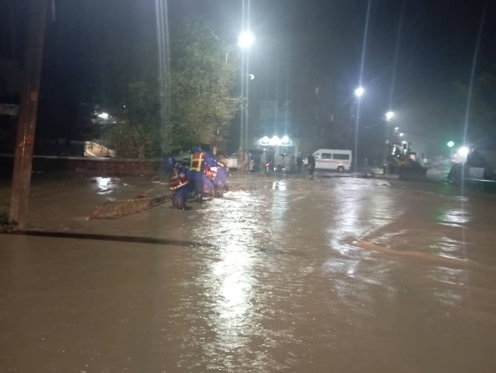На месте происшествия начали работу 26 спасателей, задействована одна единица спецтехники МЧС. Осуществлены очистка канав и отвод воды.