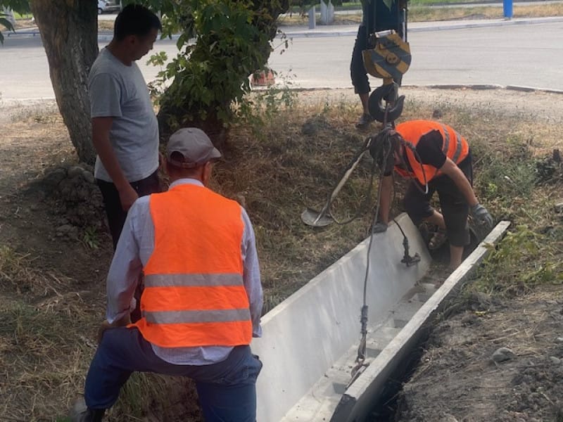 В Бишкеке сотрудники муниципального предприятия «Бишкекзеленстрой» устанавливают арычные лотки. Об этом сообщили в мэрии города.
