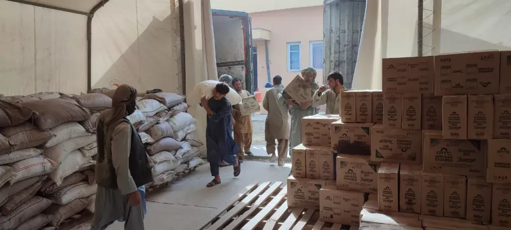 Партия гуманитарной помощи объемом 120 тонн доставлена из Кыргызстана в Афганистан, сообщила пресс-служба МЧС. Колонна с гуманитарным грузом отправилась из КР 25 сентября и была доставлена на местный склад в Афганистане 28 сентября.
