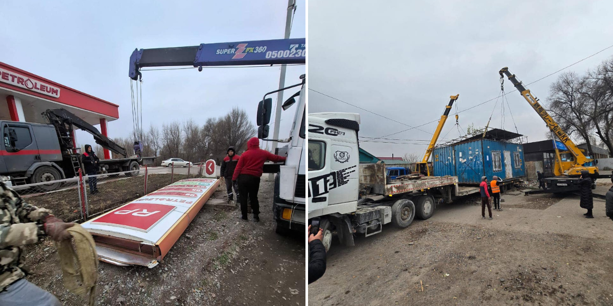 Вдоль трассы 20-21 ноября в Кара-Балте было выявлено 13 незаконных объектов, из которых 8 легких конструкций уже демонтированы, а демонтаж еще 5 продолжается. В Московском районе снесены 4 стелы автозаправочных станций и 1 легкий объект. В Сокулукском районе ликвидировано 6 объектов, еще 7 владельцев обязались убрать свои постройки самостоятельно.