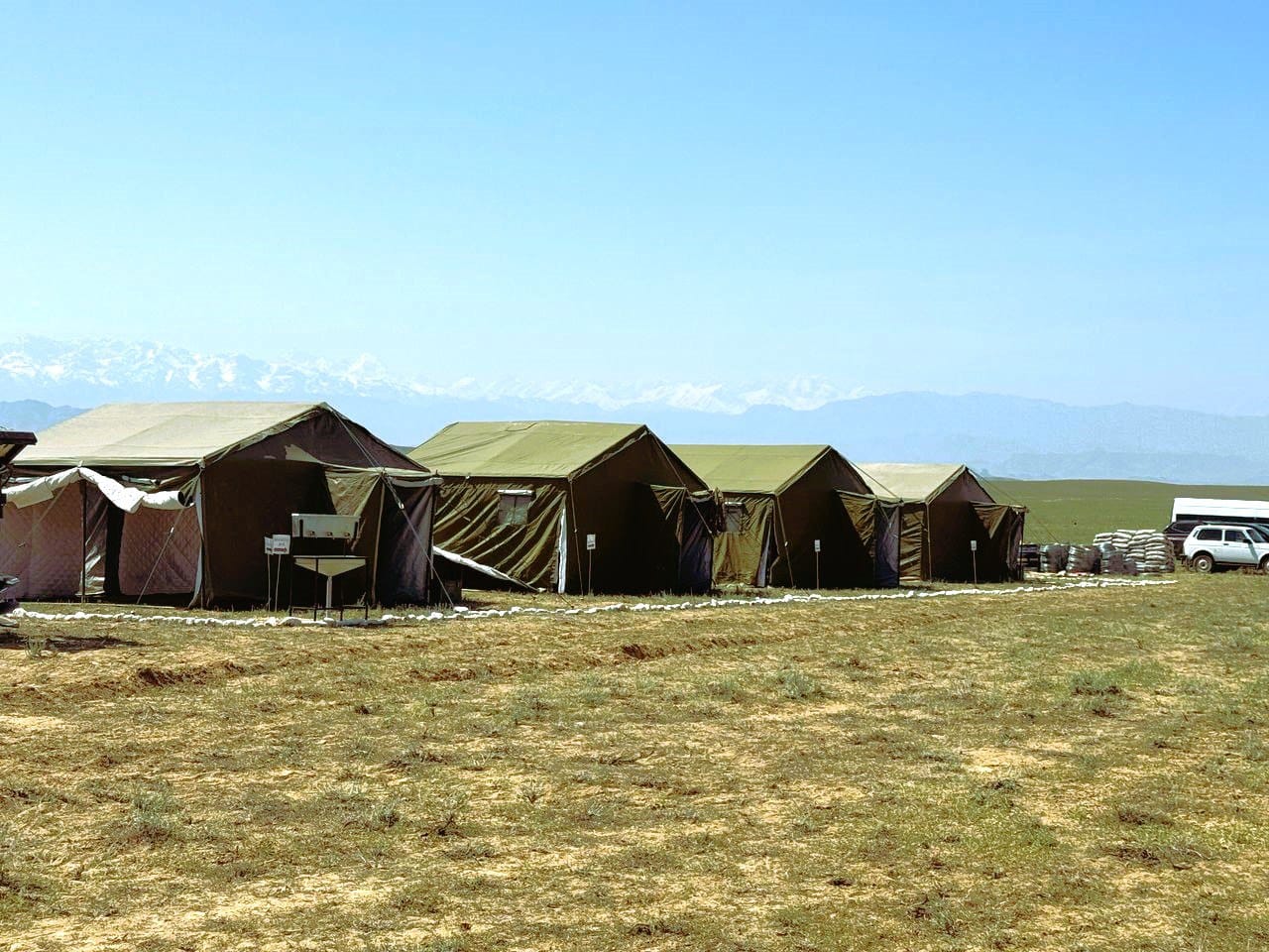 В данной зоне развернут современный полевой лагерь, доставлена спецтехника, а для военнослужащих созданы комфортные условия проживания и службы.