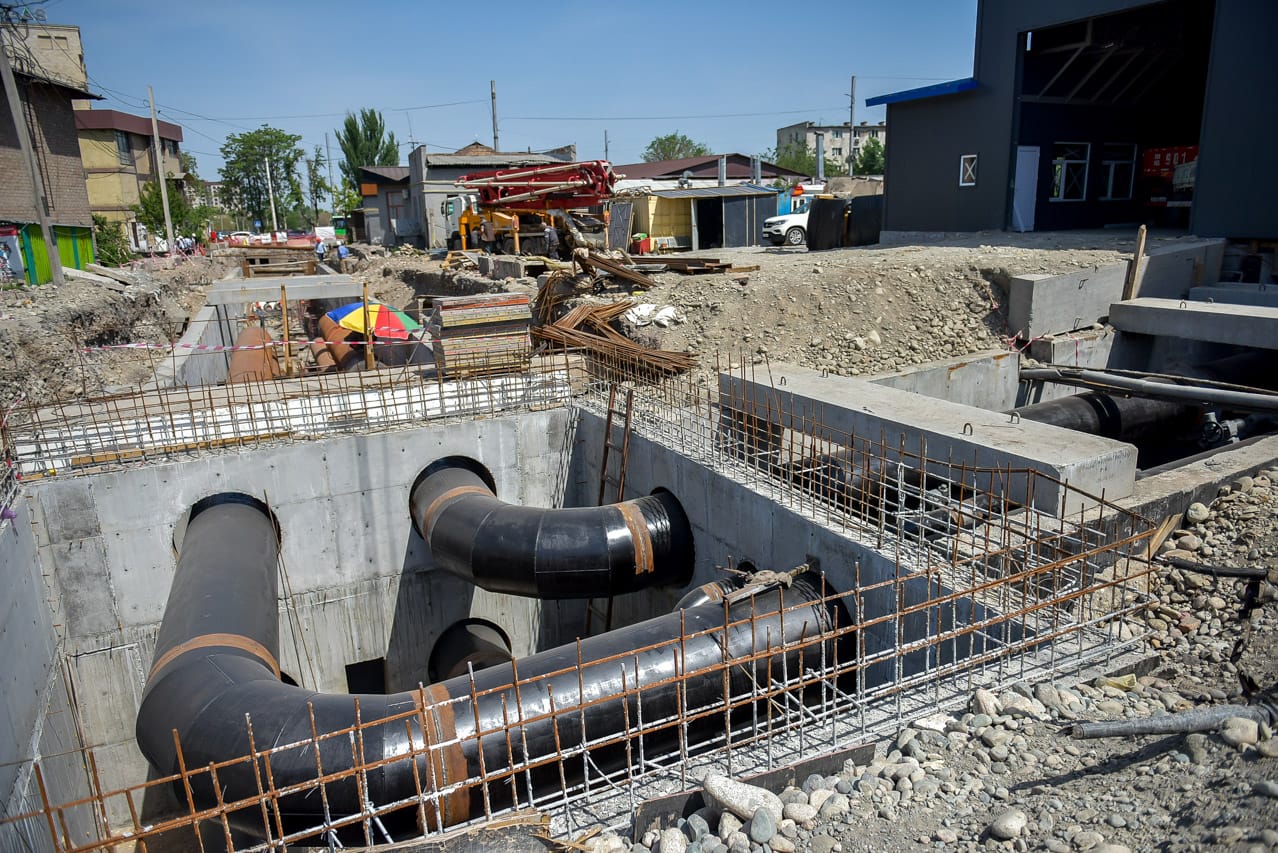 Инспекция началась с осмотра строительных работ на новой насосной станции №3, которая возводится на пересечении улиц Осмонкула и проспекта Чуй. По информации замдиректора предприятия Шаршенбека Сарыкеева, корпус здания насосной станции уже возведен, завершены основные земляные работы, включая раскопку траншеи, строительство продолжается в соответствии с утвержденным графиком без отставаний.