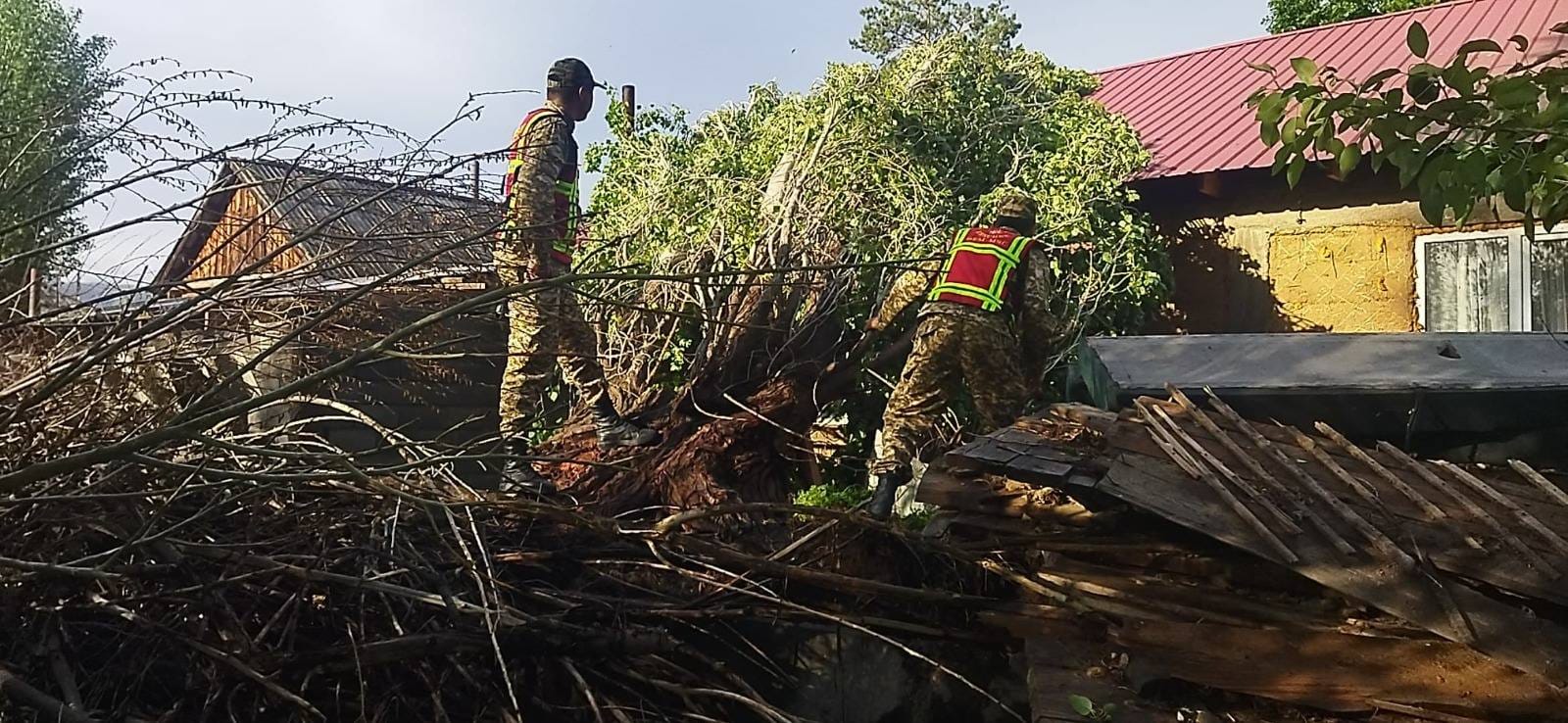 Стихия нанесла ущерб в Иссык-Кульском районе: снесены крыши 14 жилых домов, одной базы отдыха и двух хозяйственных построек. Повреждены один электрический столб, один автомобиль, повалены девять деревьев.