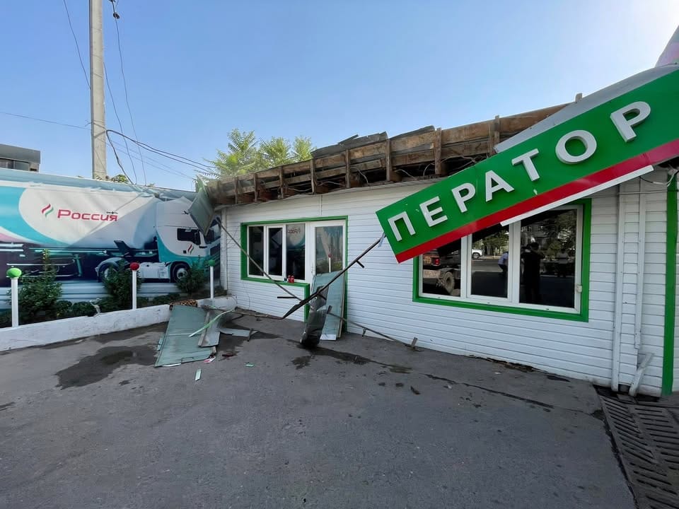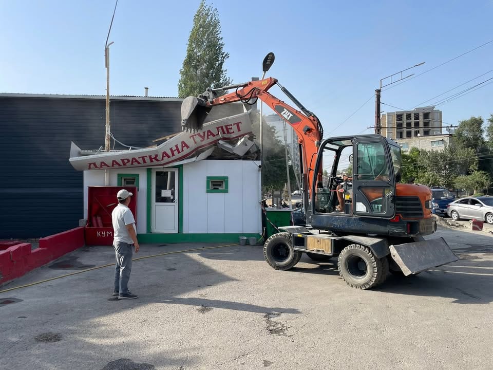 На улице Исанова в Оше начали сносить АЗС «Росcия»