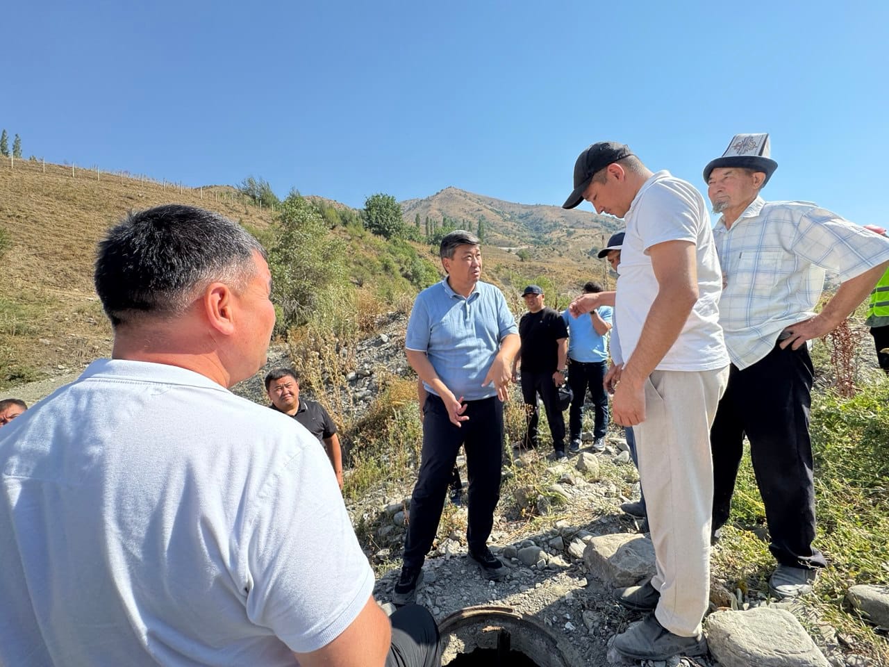 Глава Минсельхоза Бакыт Торобаев в ходе рабочей поездки ознакомился с ходом работ на объекте, расположенном на территории Багышского айыл окмоту. На первом этапе проводится бурение скважины глубиной 60 м и частичная замена водовода.