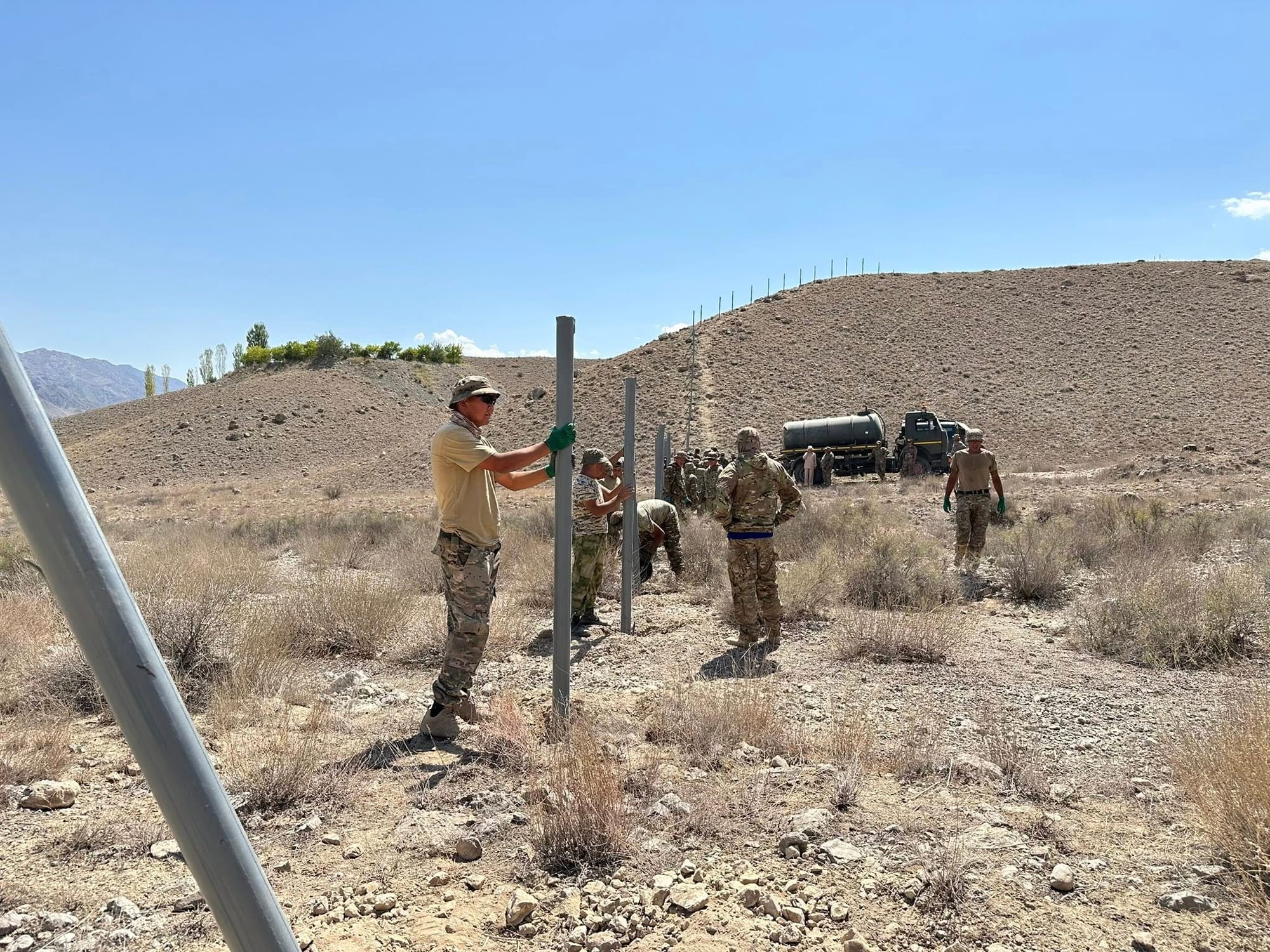 В работах задействованы военнослужащие Пограничной службы ГКНБ, инженерно-саперный отряд ПС ГКНБ, военные Министерства обороны, внутренние войска МВД, спецполк «Шумкар» МВД и сотрудники МЧС по Баткенской области. Материалы и рабочая сила обеспечены в полном объеме.