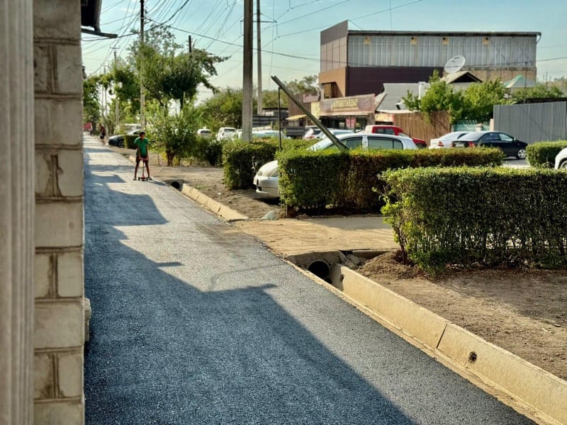 По данным муниципального предприятия «Бишкекасфальтсервис», уже выполнены демонтаж старого покрытия, установка ирригационной системы и бордюров, а также подготовка основания тротуара.