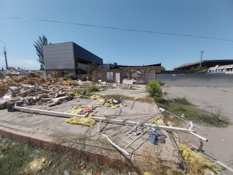 - по адресу ул. Чимкентская, 1 снесены капитальные и вспомогательные постройки: магазин, пункт обмена валют, ашкана, 3 навеса остановок, надворный туалет, диспетчерский пункт, а также 2 металлических контейнера (40 т).