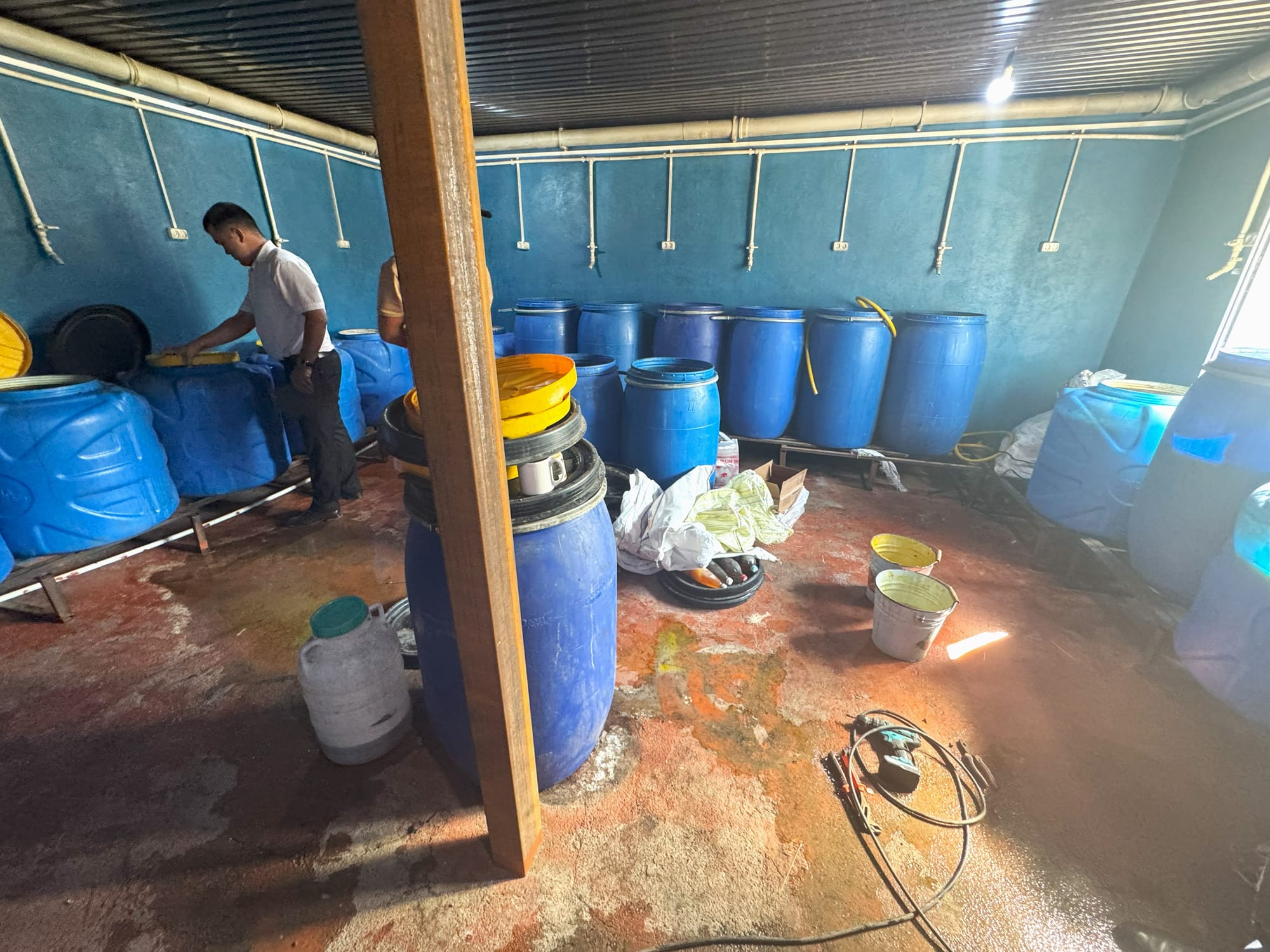 При проверке обнаружены 29 бочек с общим объемом около 5.2 тысячи литров спиртного. Для принятия мер на место прибыли сотрудники правоохранительных органов. Объект был опечатан сотрудниками городского отдела внутренних дел.