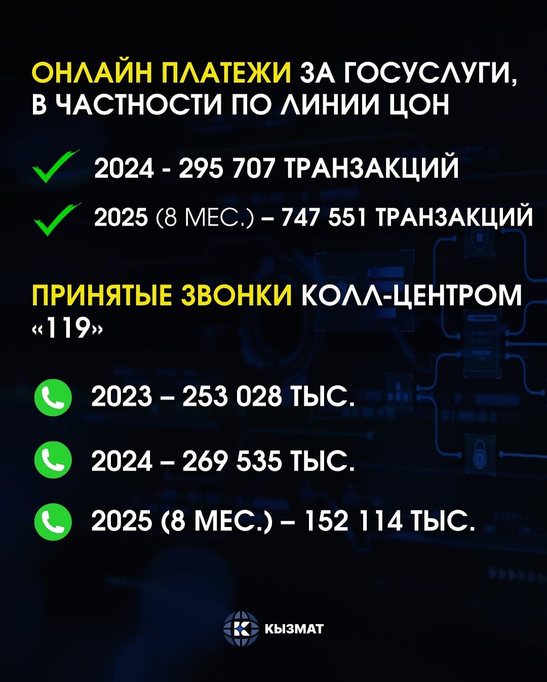 Онлайн-платежи за госуслуги через ЦОН выросли в 2.5 раза — с 295 тысяч в 2024 году до 747 тысяч за восемь месяцев 2025 года.