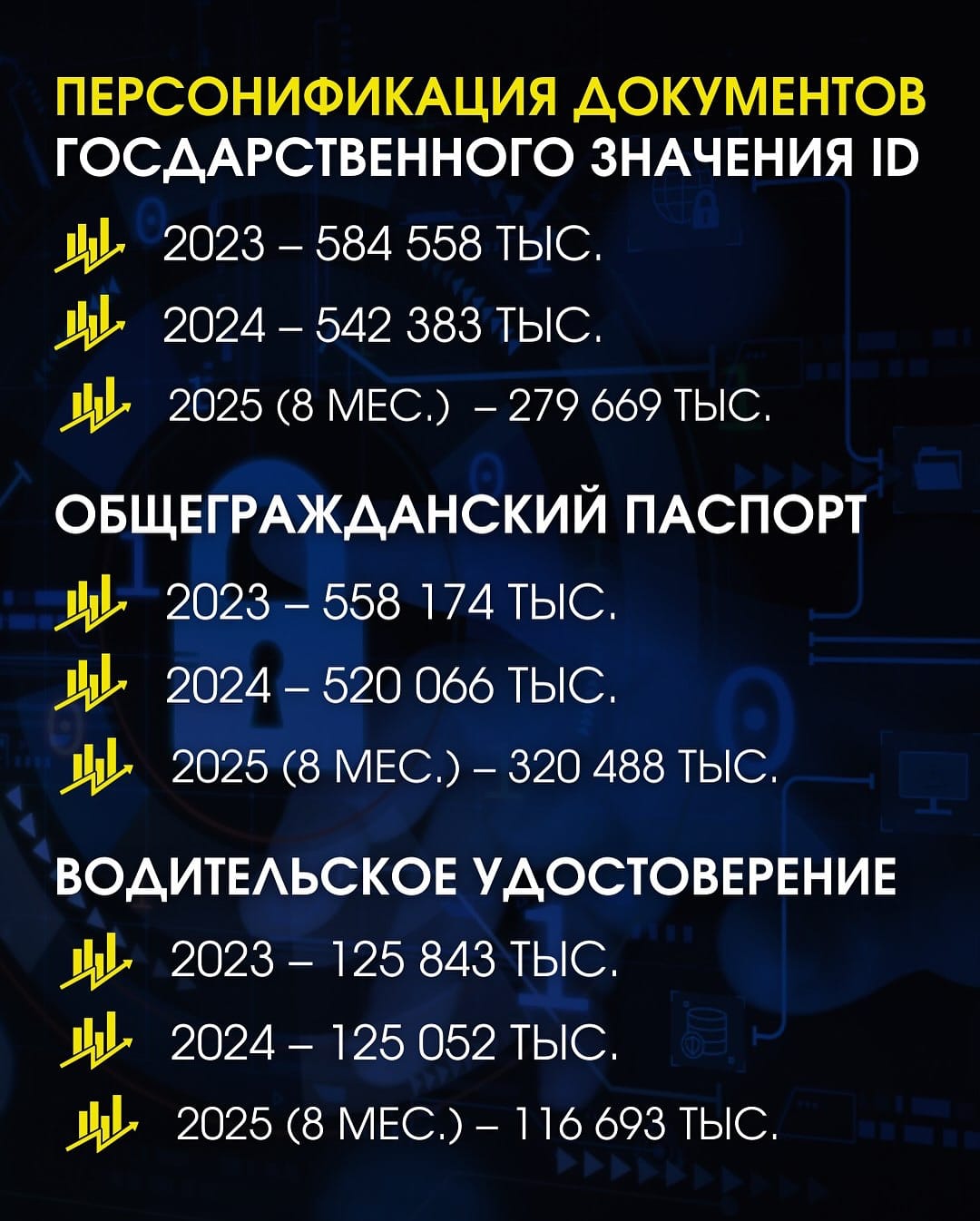 В системе электронного документооборота Infodocs обработано почти 30 млн документов. Продолжается массовая персонификация госдокументов — ежегодно оформляются сотни тысяч ID-карт, паспортов и водительских удостоверений.