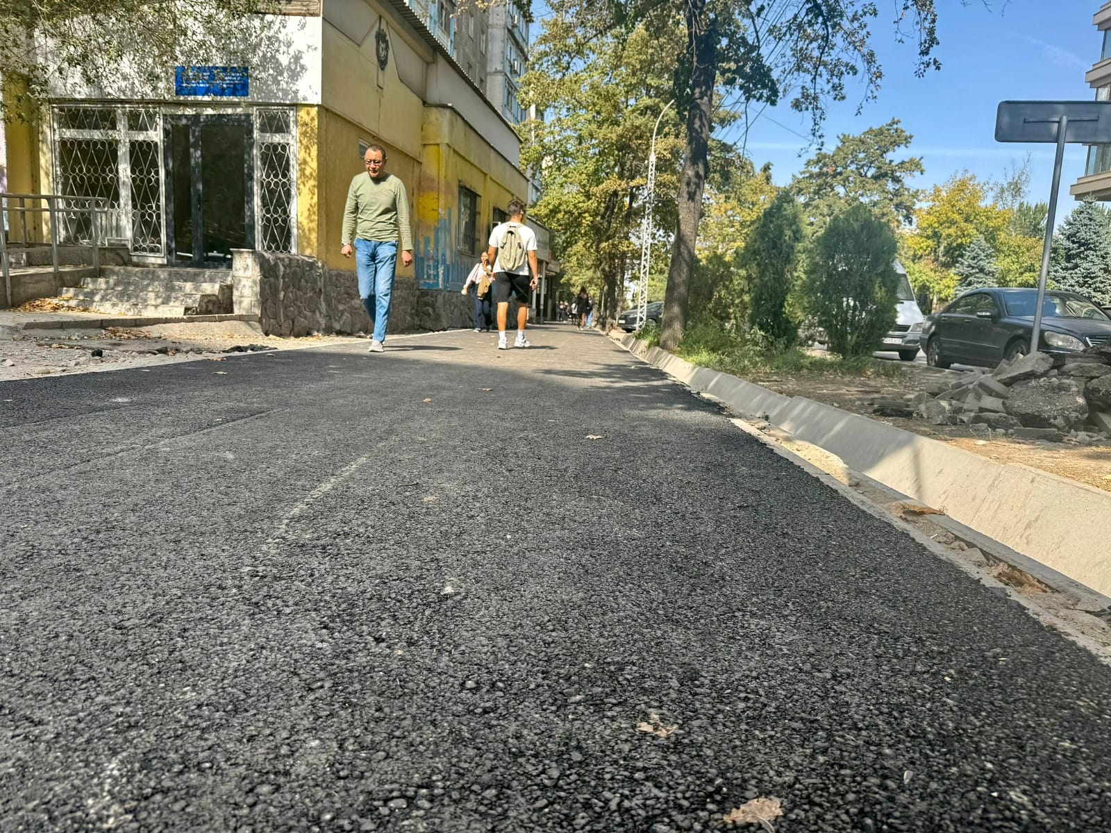 Подрядчиком выступает ОсОО «Хейл Групп», работы выполняет муниципальное предприятие «Бишкекасфальтсервис». Асфальт укладывают на южной стороне улицы — от Тыныстанова до Абдрахманова и от Тыныстанова до бульвара Эркиндик. На других отрезках продолжаются геодезические работы, установка бордюров и подготовка тротуаров.