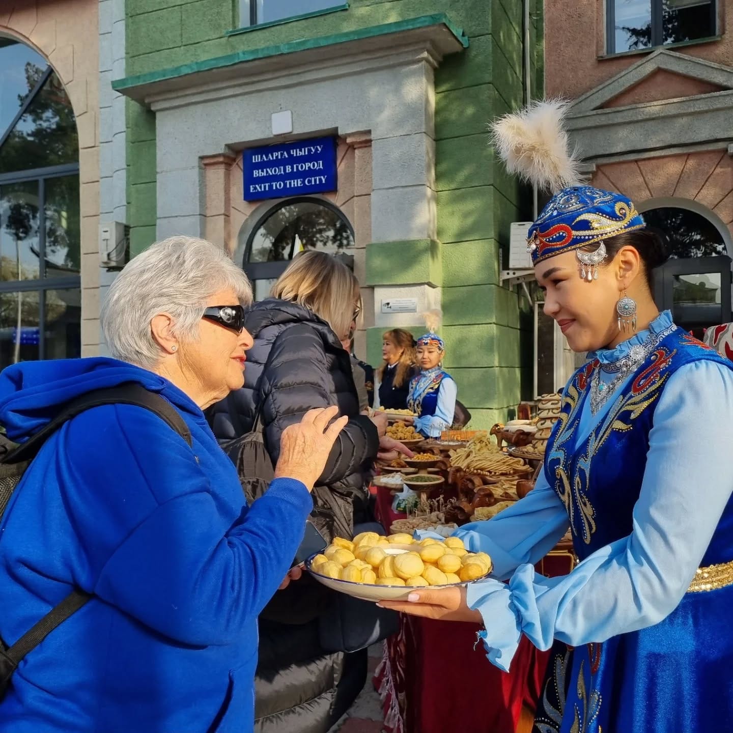 Для встречи поезда ГП «Кыргыз темир жолу» организовал торжественную церемонию с этно-фуршетом, национальной музыкой и культурной программой.