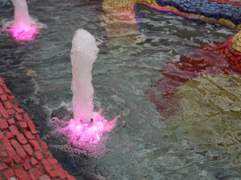 Фонтан получил новую гидроизоляцию чаши: поверхность очищена, швы и трещины заделаны, нанесен многослойный лак для усиления цвета и блеска. Полностью заменено насосное и электрооборудование, создана диспетчерская с коммуникационным каналом.