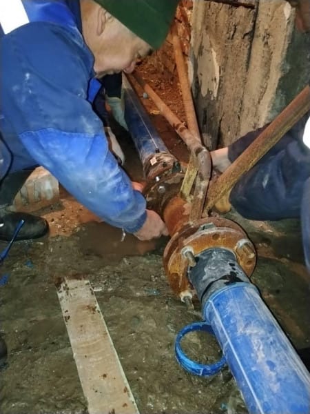 Аварийная бригада МП «Бишкекводоканал» оперативно прибыла на место и провела ремонтно-восстановительные работы на участке водопровода диаметром 400 мм.