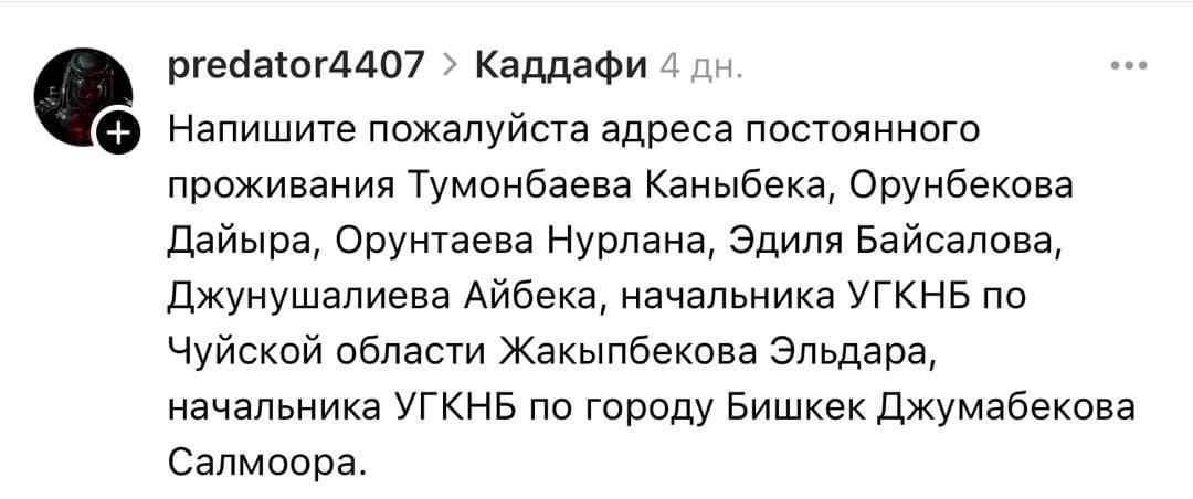 По данным ведомства, задержан гражданин КР А.Д.С., 1979 года рождения. Он управлял аккаунтом predator4407 в социальных сетях Instagram и Threads и, как утверждает ГКНБ, поддерживал контакты с лидерами деструктивных групп за пределами страны.