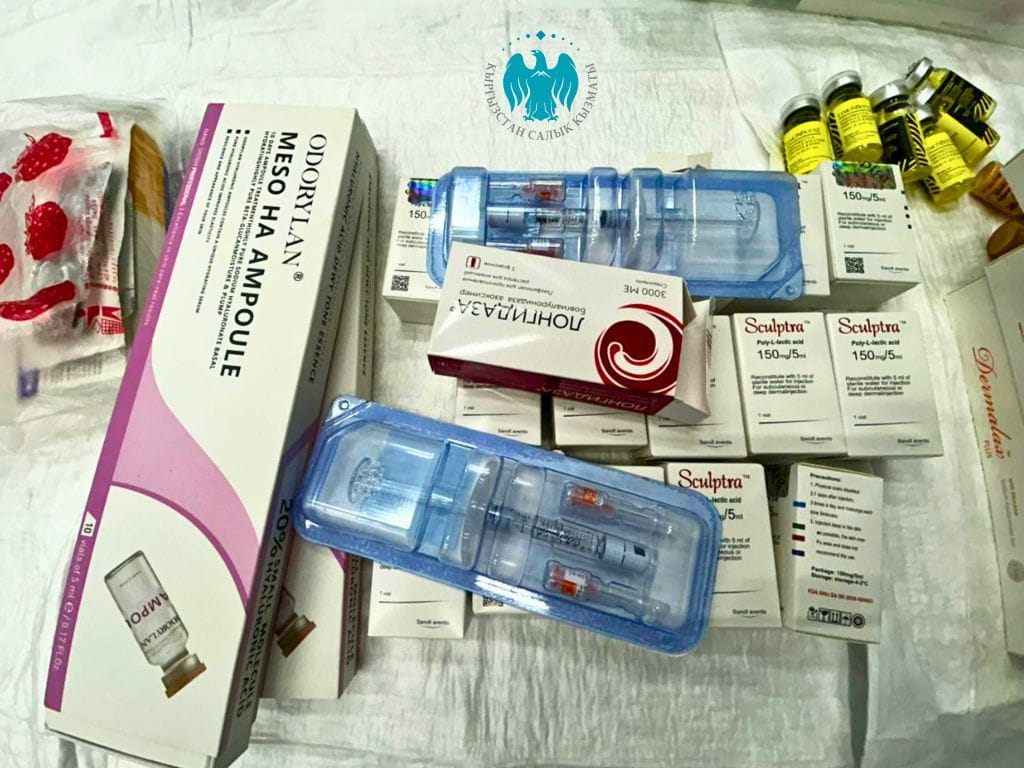 Нарушения выявили и на складе индивидуального предпринимателя Б.А.М., занимавшегося фармацевтической деятельностью без лицензии. Проверка показала наличие медицинских препаратов, не зарегистрированных в Госреестре медицинских изделий КР. На упаковках обнаружены переклеенные этикетки — поверх оригинальной маркировки «медицинские изделия» наклеивались ярлыки «косметические средства».