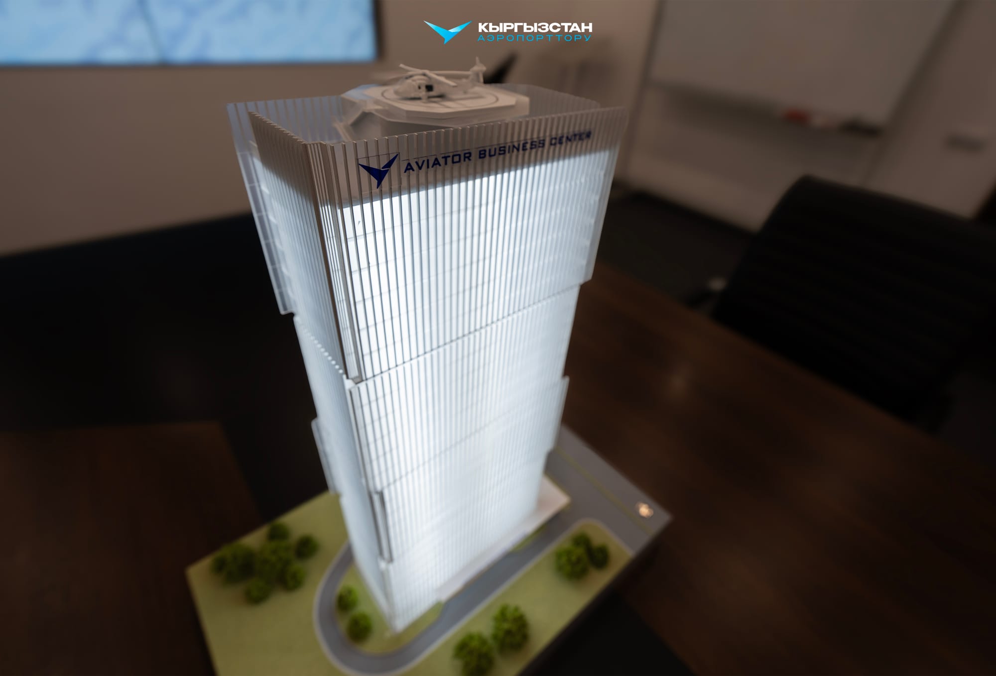 ОАО «Аэропорты Кыргызстана» планирует строительство в Бишкеке 25-этажного бизнес-центра «Авиатор» с вертолетной площадкой на крыше, сообщил председатель правления компании Манасбек Самидинов.