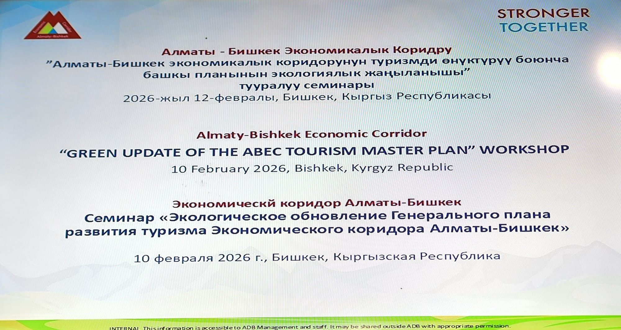 12 февраля 2026 года в Бишкеке представили обновленный мастер-план по туризму экономического коридора Алматы – Бишкек для Кыргызстана и Казахстана, подготовленный при поддержке АБР, сообщает Минэконом.