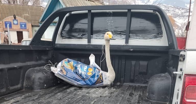 В Шабдане спасли раненого лебедя и отправили на реабилитацию