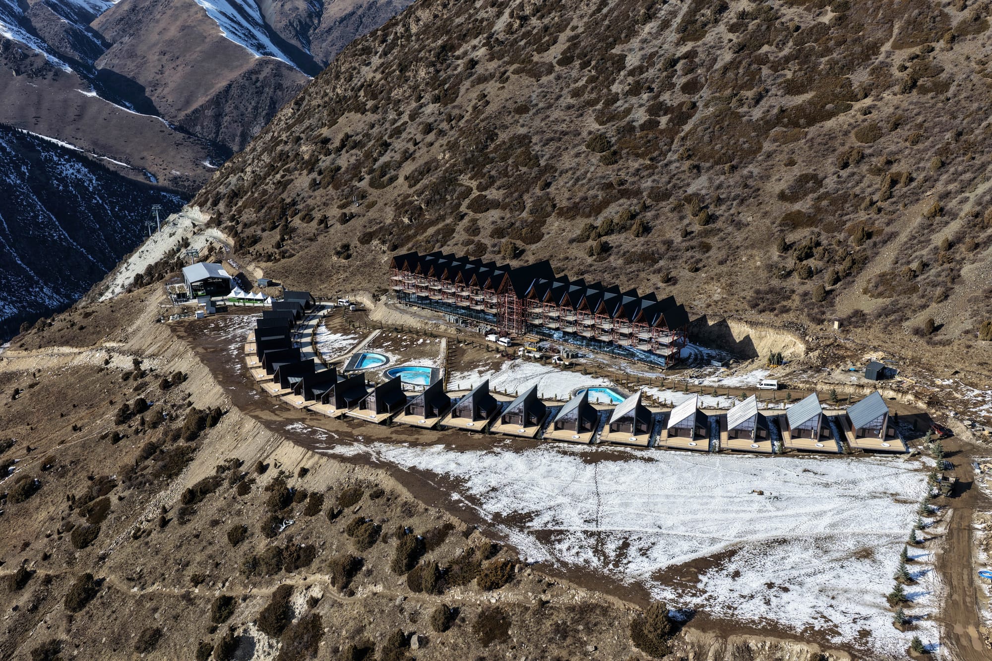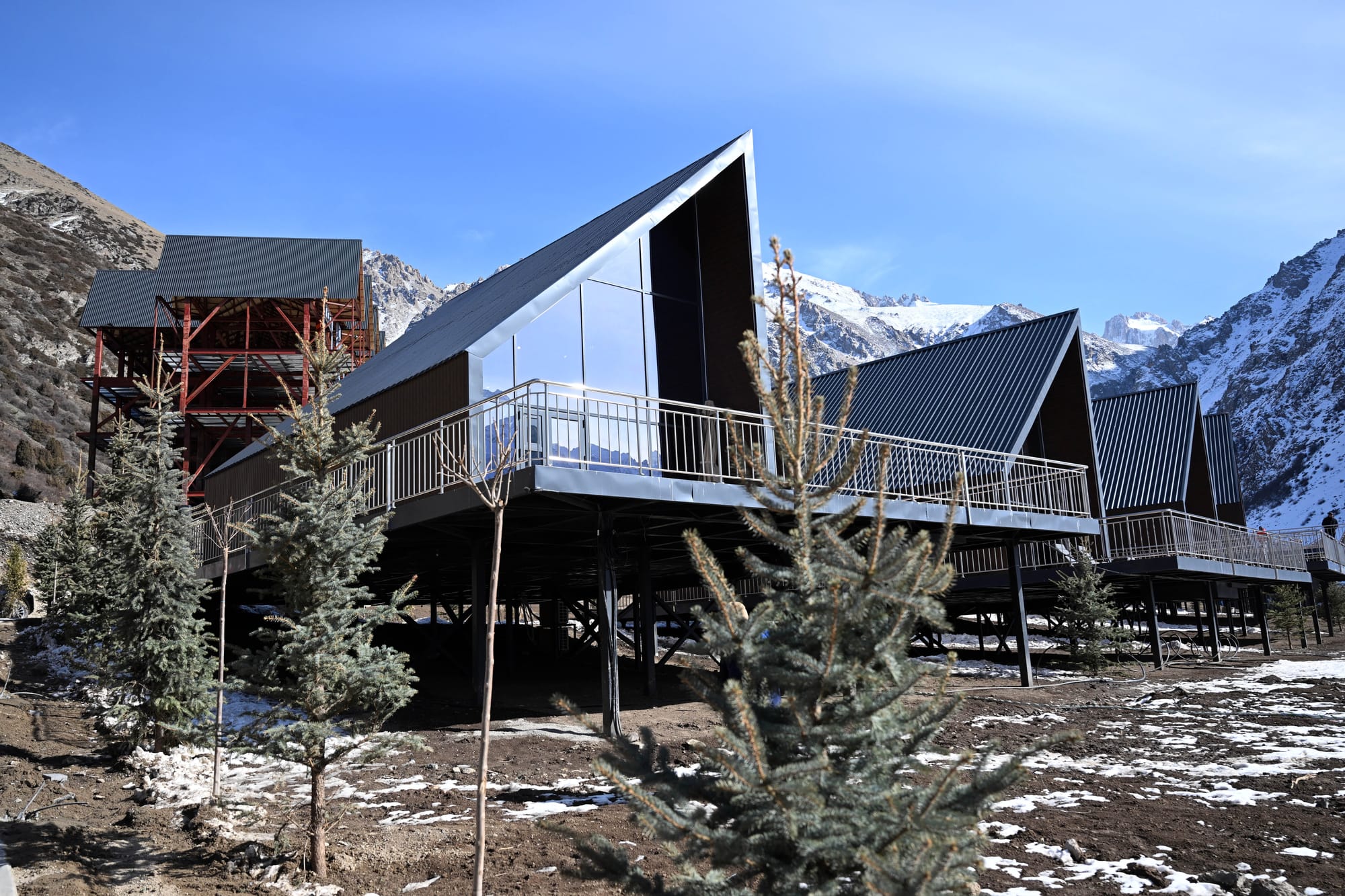 На верхней станции планируется строительство 20 гостевых домов в формате A-frame и трехэтажного эко-отеля.