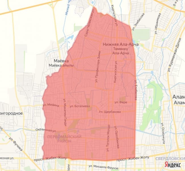 Без воды останутся районы, ограниченные улицами Куренкеева, Абдрахманова, Элебесова и Бельской, а также территорией вдоль реки Ала-Арча, проспекта Жибек Жолу, бульвара Молодой Гвардии, БЧК и улицы Саадаева. Ограничения также затронут жилмассивы «Красный Строитель», «Ак-Тилек», «Кольмо», «Алтын Бешик» и «Салам Алик».