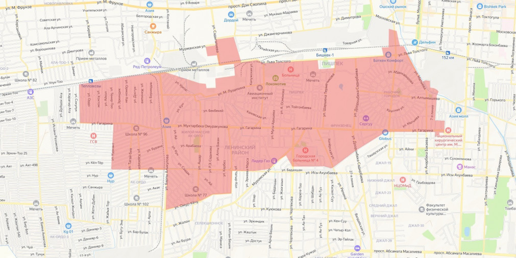 - жилмассив «Ак-Ордо» (северная часть ул. Ахунбаева);
