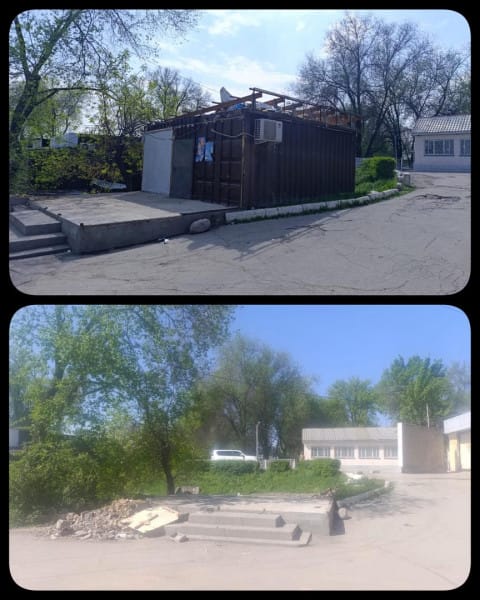 На пересечении улиц Лумумбы и Шаттык владельцы в добровольном порядке демонтировали 6 объектов облегченного типа. Решение о сносе павильонов ранее приняла комиссия мэрии города.