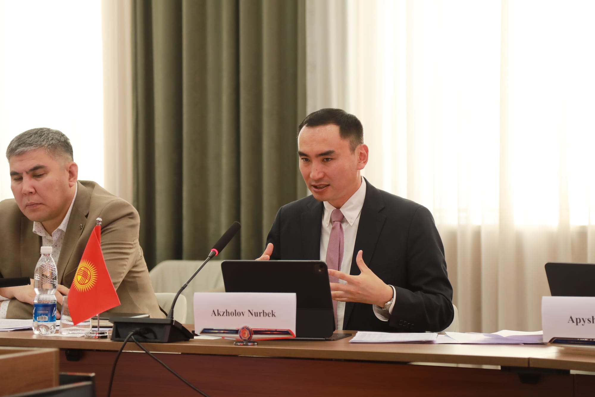С кыргызстанской стороны участвовал заместитель министра финансов Нурбек Акжолов, с японской — директор второго отдела планирования страновой помощи МИД Японии Хиросэ Айко. Также на встрече присутствовали представители госорганов.