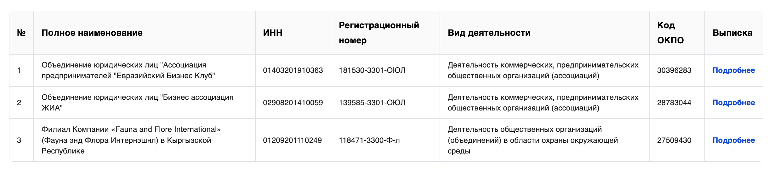 В список вошли три организации: ассоциация предпринимателей «Евразийский бизнес-клуб», бизнес-ассоциация JIA и филиал международной экологической организации Fauna and Flore International.