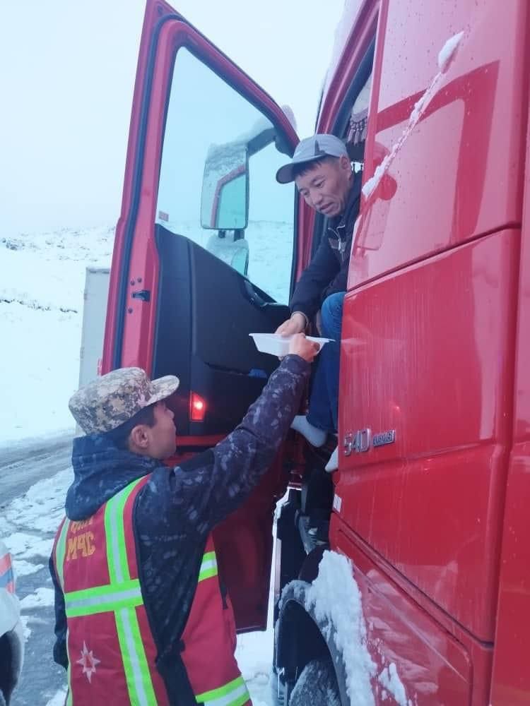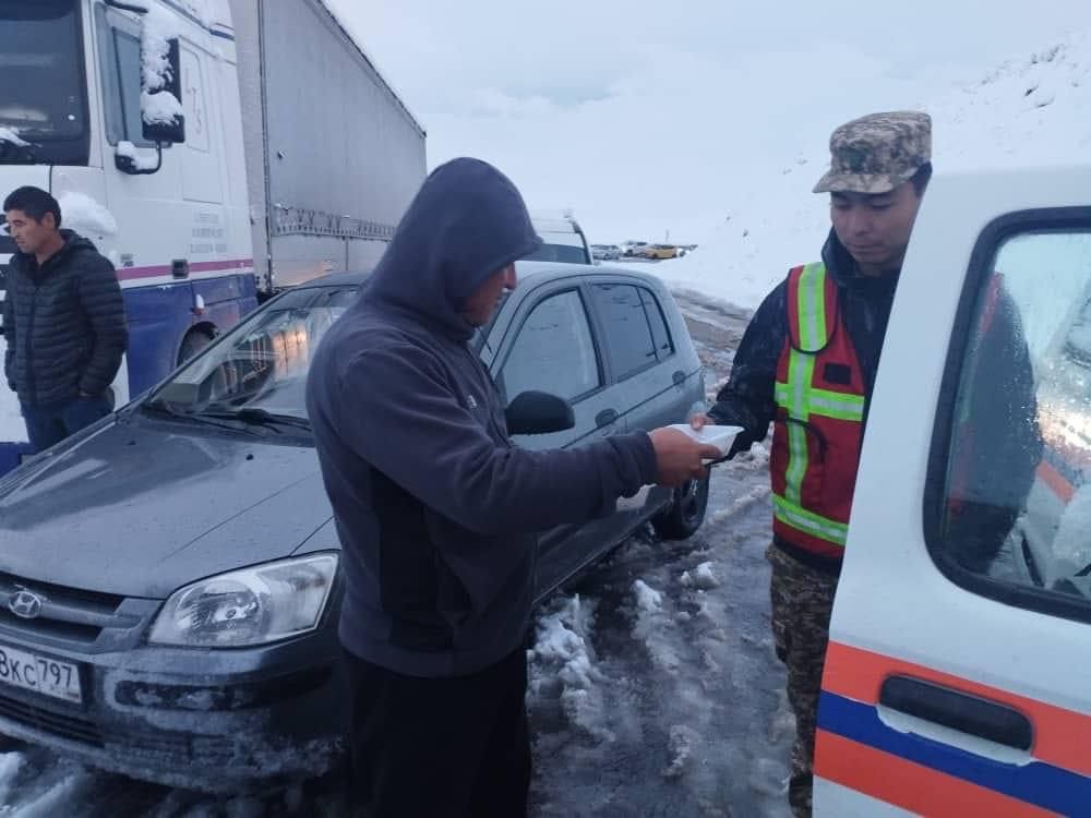 МЧС организовал пункты обогрева на перевалах «Сосновка» и «Арал», где гражданам предоставляют одеяла, горячий чай и еду.
