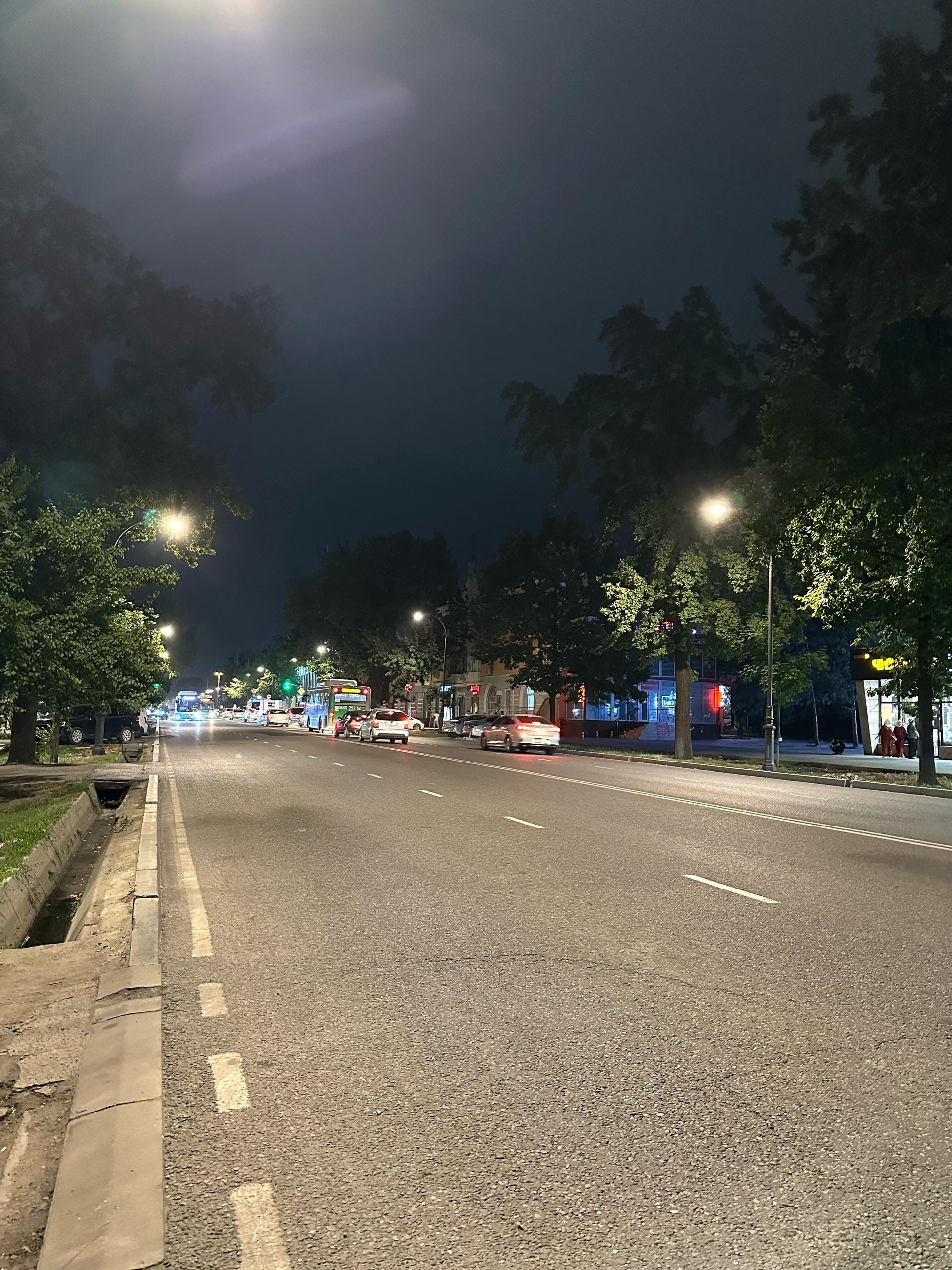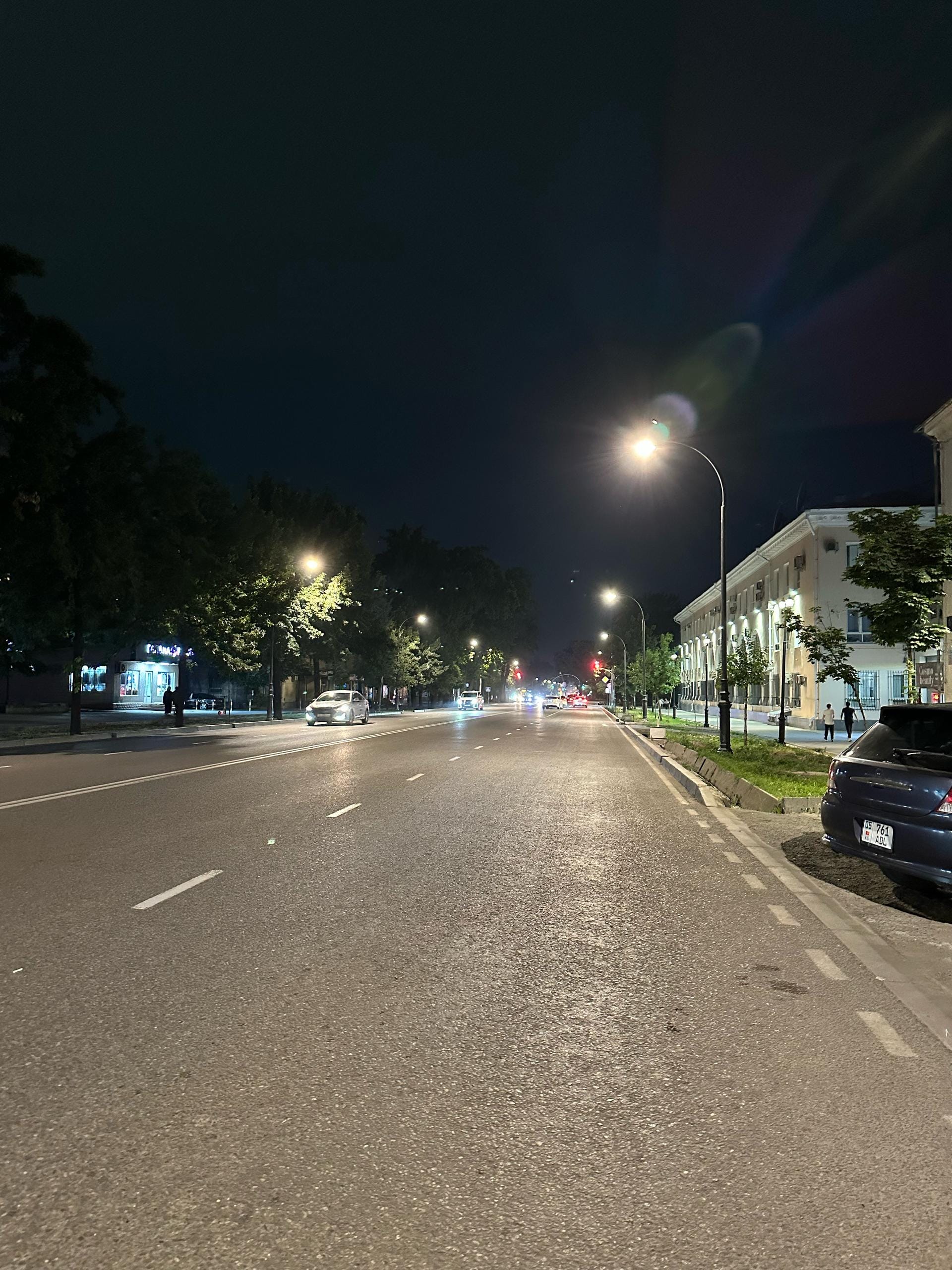 На проспекте Чуй в Бишкеке установили новые фонари и обновили освещение аллеи