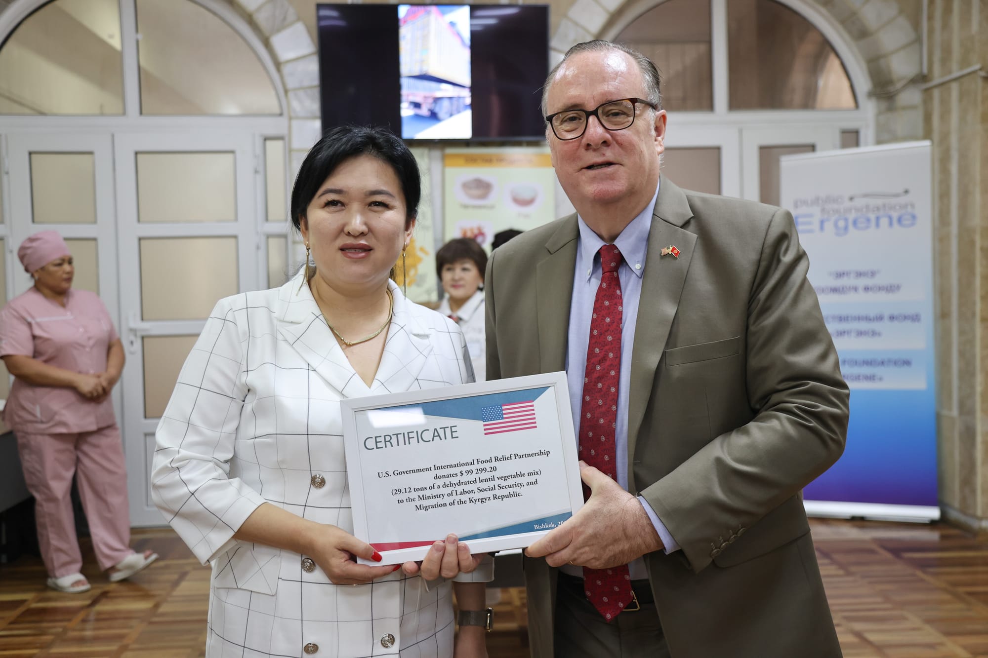 «Международное партнерство по оказанию продовольственной помощи демонстрирует, как правительства, некоммерческие организации и американские промышленные предприятия могут объединить усилия для помощи нуждающимся», — отметил посол США в КР Лесли Вигери.