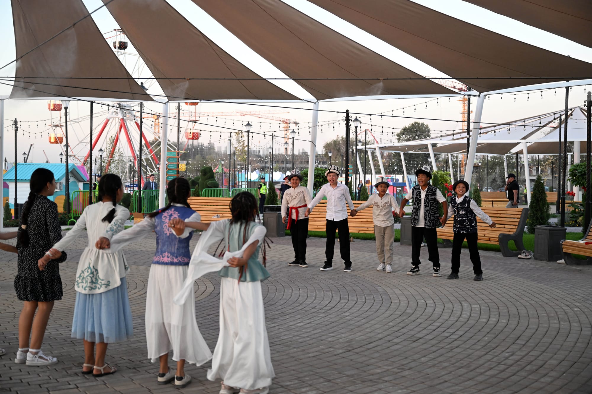Перед началом мероприятия президент осмотрел территорию парка, ознакомился с его возможностями для отдыха и досуга, а также посетил детское представление, которое стало символичным началом праздника.