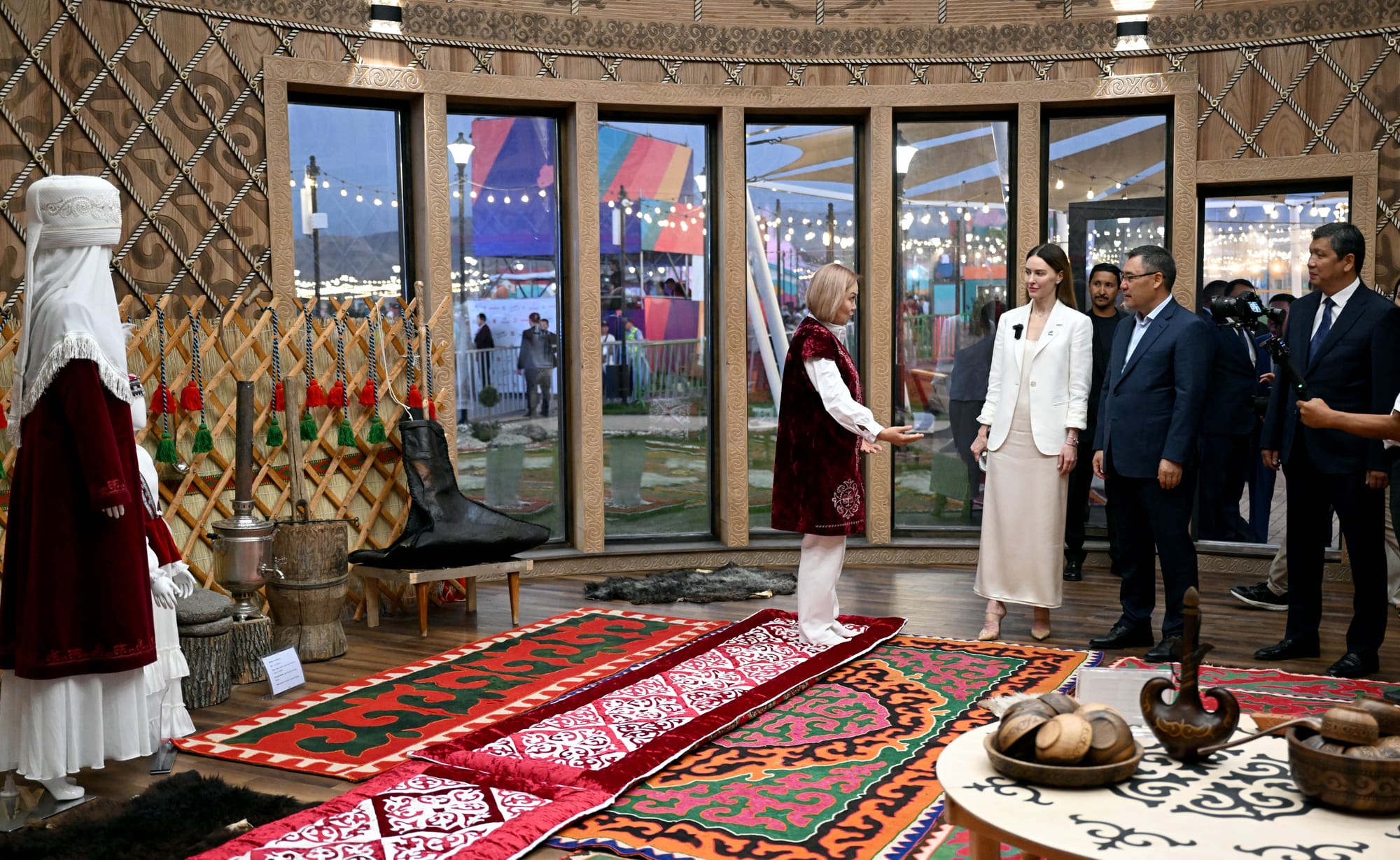 В завершение мероприятия президент ознакомился с экспозицией в форме юрты, где представлены предметы быта, наглядно рассказывающие о богатом культурном наследии кыргызского народа.