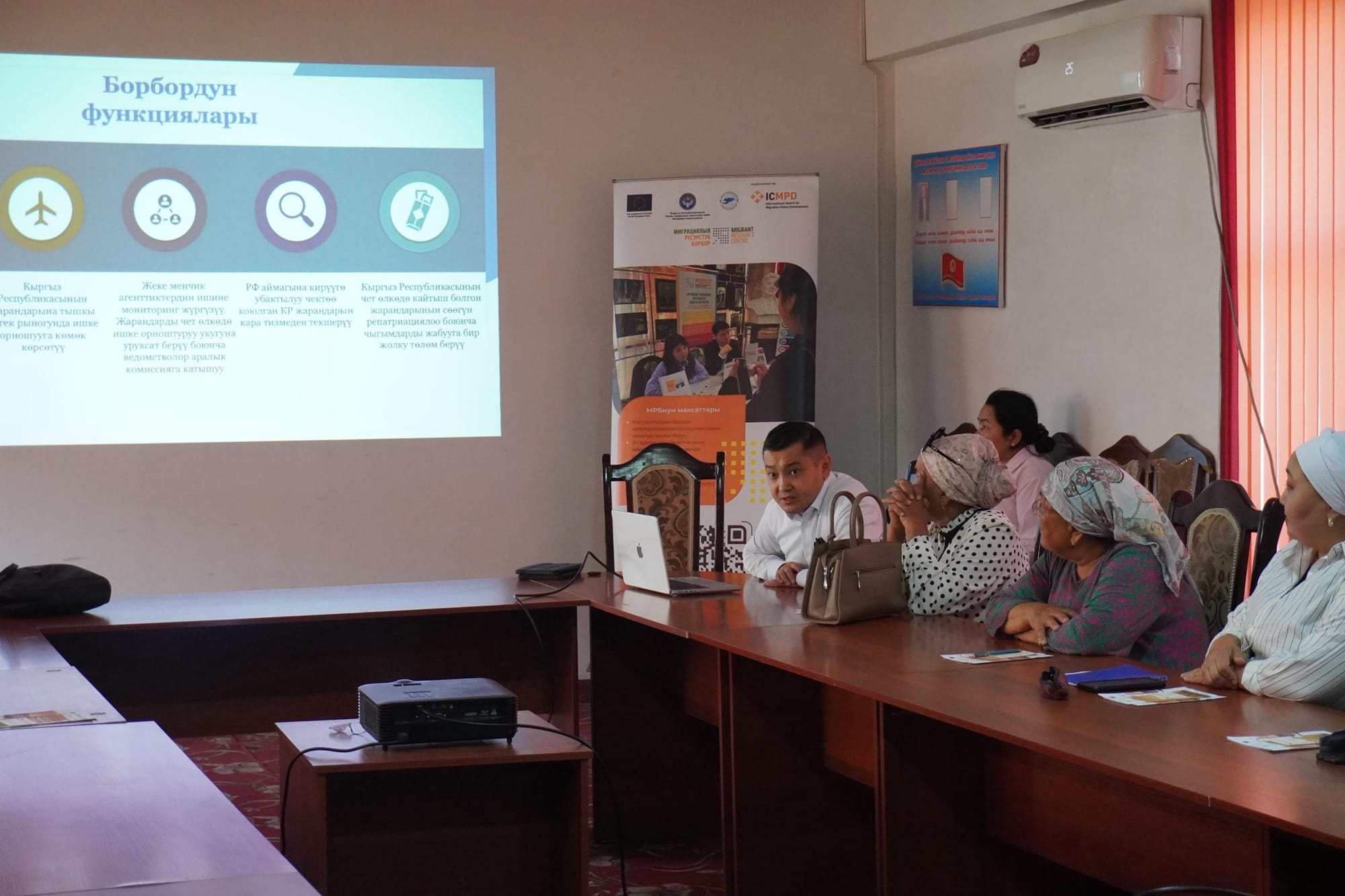 В Джалал-Абадской области с 8 по 12 сентября Центр трудоустройства граждан за рубежом при поддержке Международного центра по развитию миграционной политики (ICMPD) организовал серию информационно-разъяснительных мероприятий в рамках «Каравана безопасной миграции». Об этом сообщает пресс-служба центра.