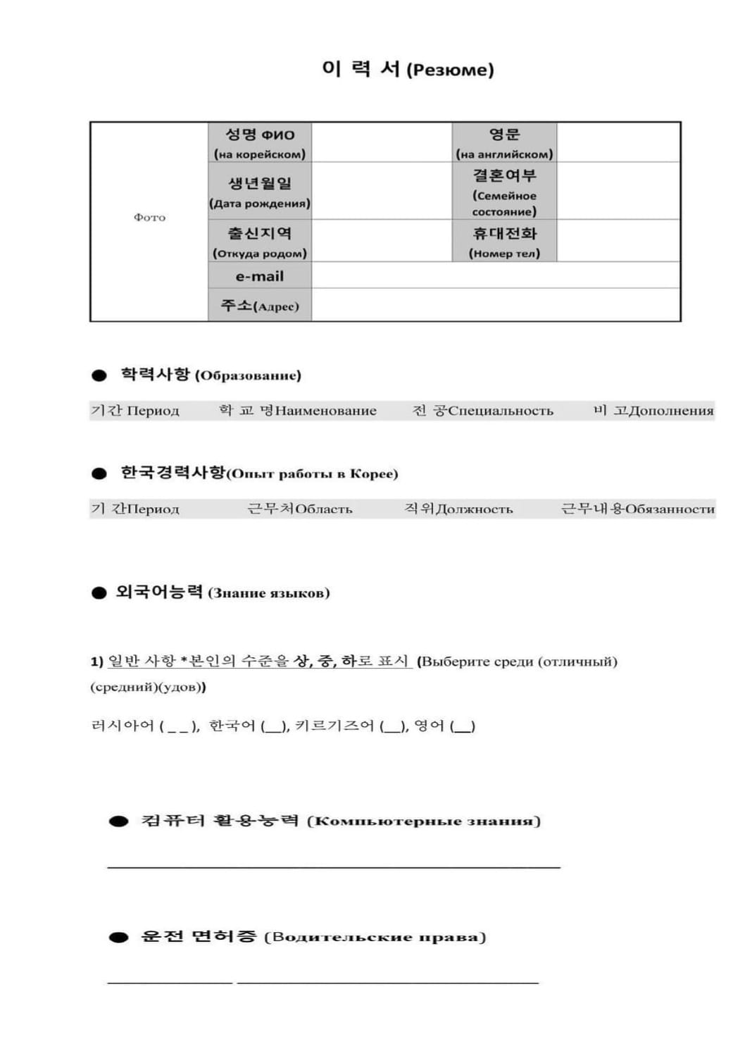 Кандидаты могут составить резюме самостоятельно на корейском языке, важно, чтобы все пункты соответствовали образцу резюме.