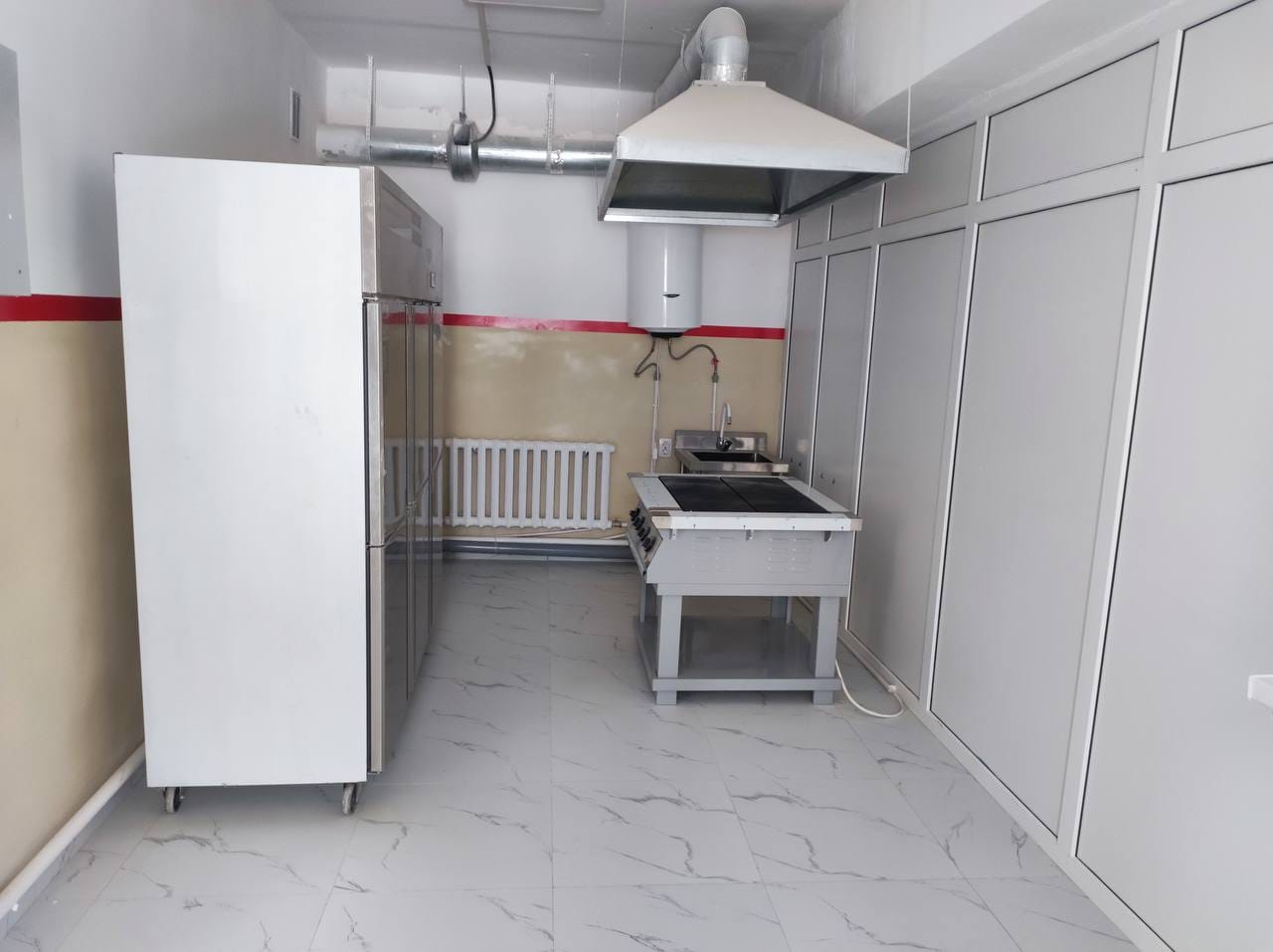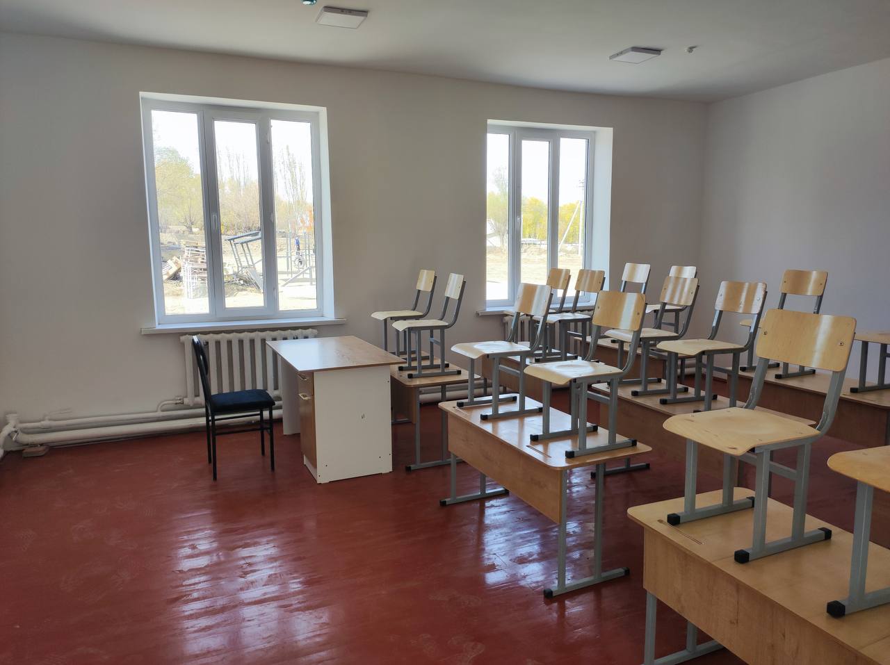Строительство началось в 2022 году и полностью завершено в этом году. Одноэтажное здание площадью 1 423 кв. м. включает учебные классы, административные помещения и современный спортивный зал.