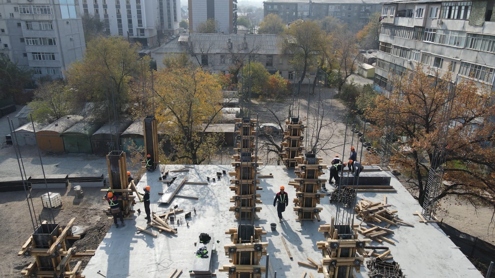 По данным мэрии, завершены работы по перекрытию второго этажа, ведется прокладка инженерных сетей и возведение колонн. Подрядчиком выступает ОсОО «Эссир Компани».