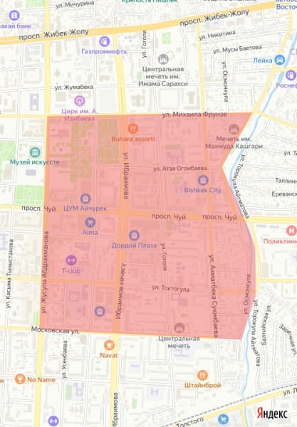 Под отключение попадут дома и учреждения, расположенные в районе, ограниченном улицами: Осмонкула (от пр. Чуй до пр. Жибек Жолу), Московская, Ибраимова и Фрунзе.