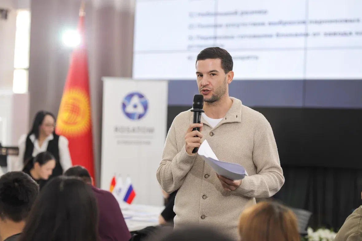 С приветственным словом выступил Дмитрий Константинов, генеральный директор представительства госкорпорации «Росатом» в Кыргызстане.