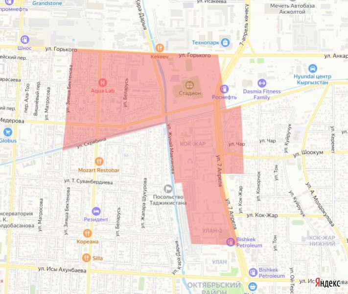 - ул. Юнусалиева – ул. М. Горького – 7 Апреля.