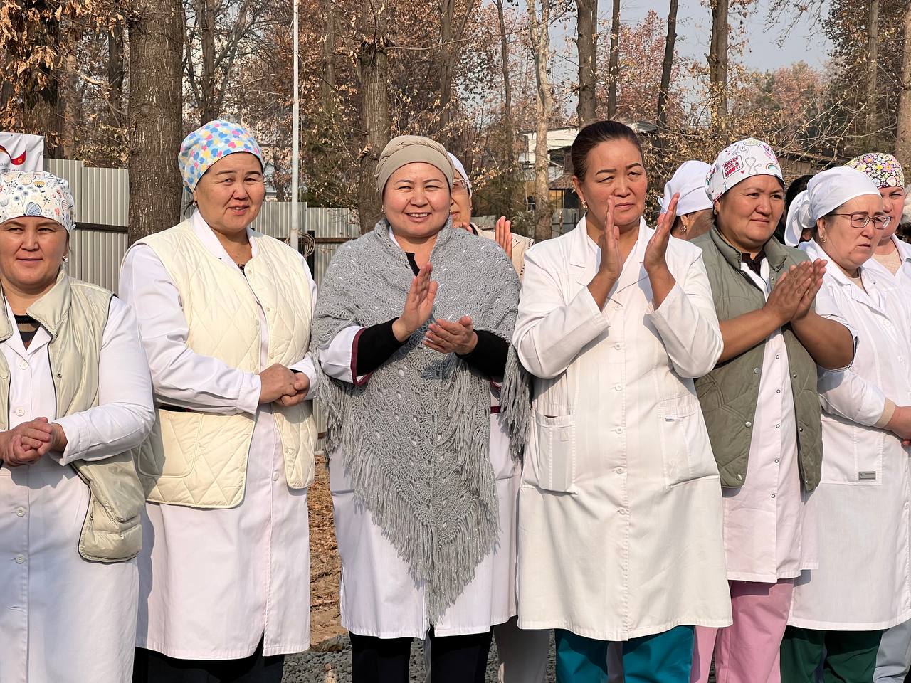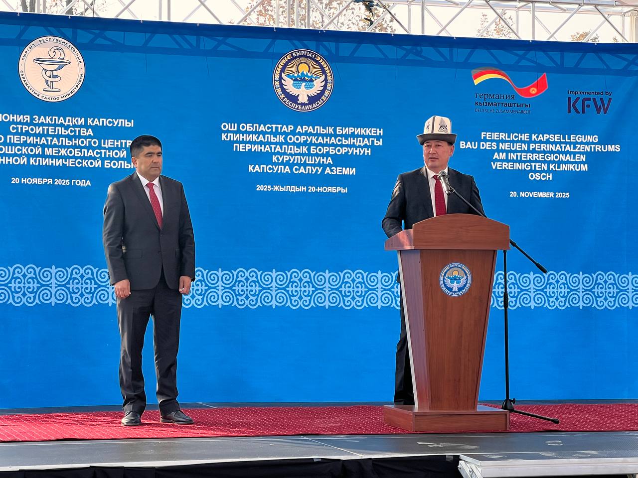 В церемонии участвовали полпред президента в Ошской области Эльчибек Джантаев, первый заместитель министра здравоохранения Манас Токтомуратов, посол Германии в КР Моника Ленхард и представители Банка развития KfW.