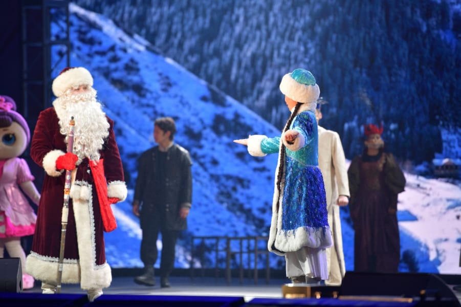 На площади Ала-Тоо в Бишкеке прошла церемония зажжения огней новогодней елки