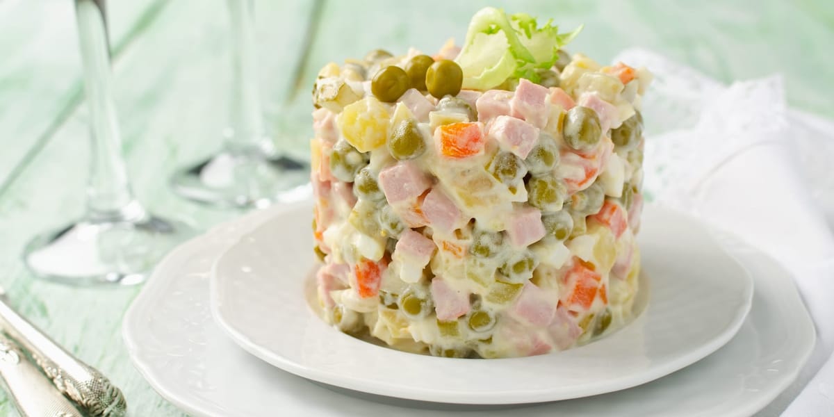 Классический «Оливье» остается относительно бюджетным — набор продуктов (колбаса/мясо, овощи, яйца, майонез) стоит в среднем 550 сомов.
