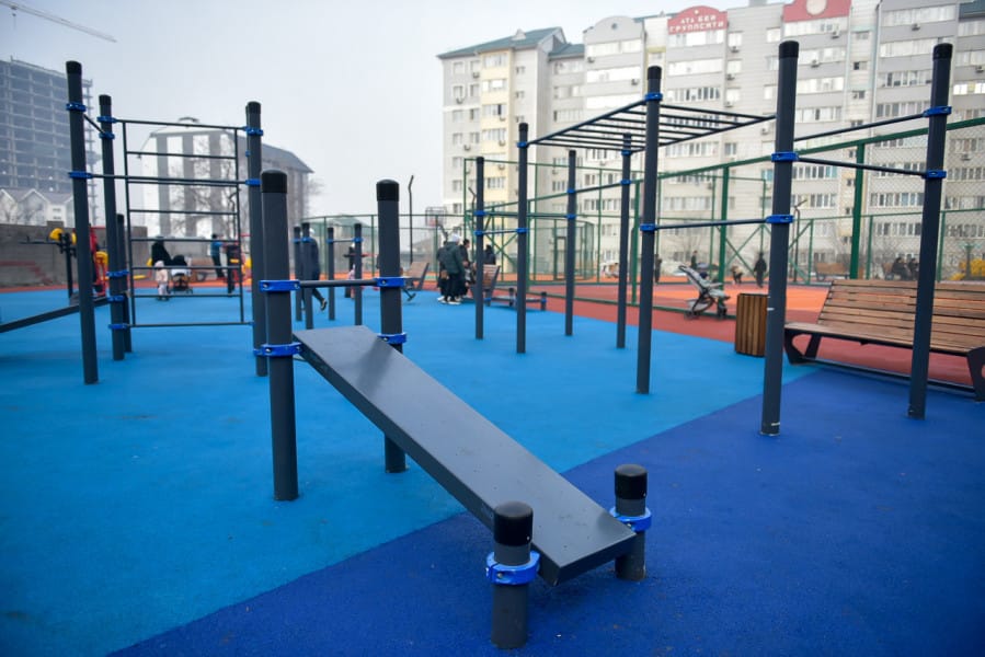 В Бишкеке состоялось открытие нового общественного пространства на улице Садырбаева, включающего спортивные площадки и зоны отдыха общей площадью 3 079 м².