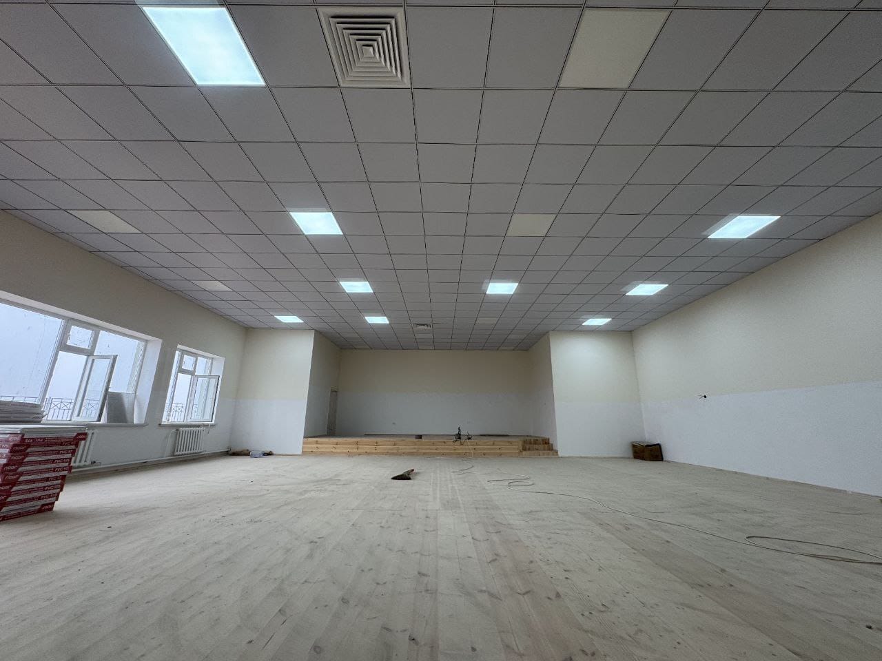 Строительство стартовало в декабре 2022 года. На сегодня готовность объекта составляет 90%. Школу возводят по типовому проекту с современными учебными и вспомогательными помещениями.